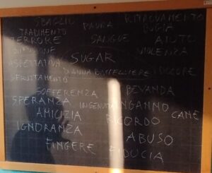 Ogni alunno ha poi detto una parola, senza pensarci troppo: una parola di pancia…di cuore e, alla fine della raccolta di parole, è stata aggiunta, partendo dalle parole scritte sulla lavagna, una breve riflessione, un pensiero, che poteva diventare anche un testo scritto.